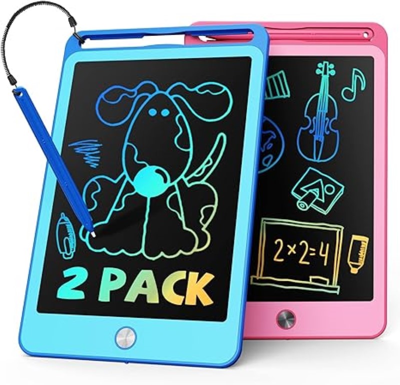 TEKFUN 2 Pack 8.5″ LCD doodle boards are perfect for twins or multiple children. Features include lock function, easy erase button, and stylus lanyard. Ideal for travel, learning, and mess-free coloring.